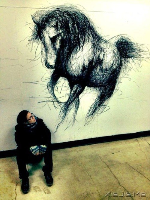来自温哥华的艺术学生 Fiona Tang,用木炭,丙烯涂料和彩粉笔等原料创造了这些真实大小的3D动物绘图,非常惟妙惟肖,真是酷到没朋友。